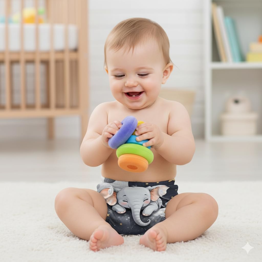 • ✅ [ADJUSTABLE POCKET DIAPER – FREE SIZE 5–18KG] The diaper features multiple snap buttons for perfect size adjustment—small, medium, large, and XL in one diaper. Suitable for babies 0 months to 3 years (5–18kg). The soft elastic and inner fabric ensure a secure yet gentle fit, giving your baby maximum comfort and freedom of movement.